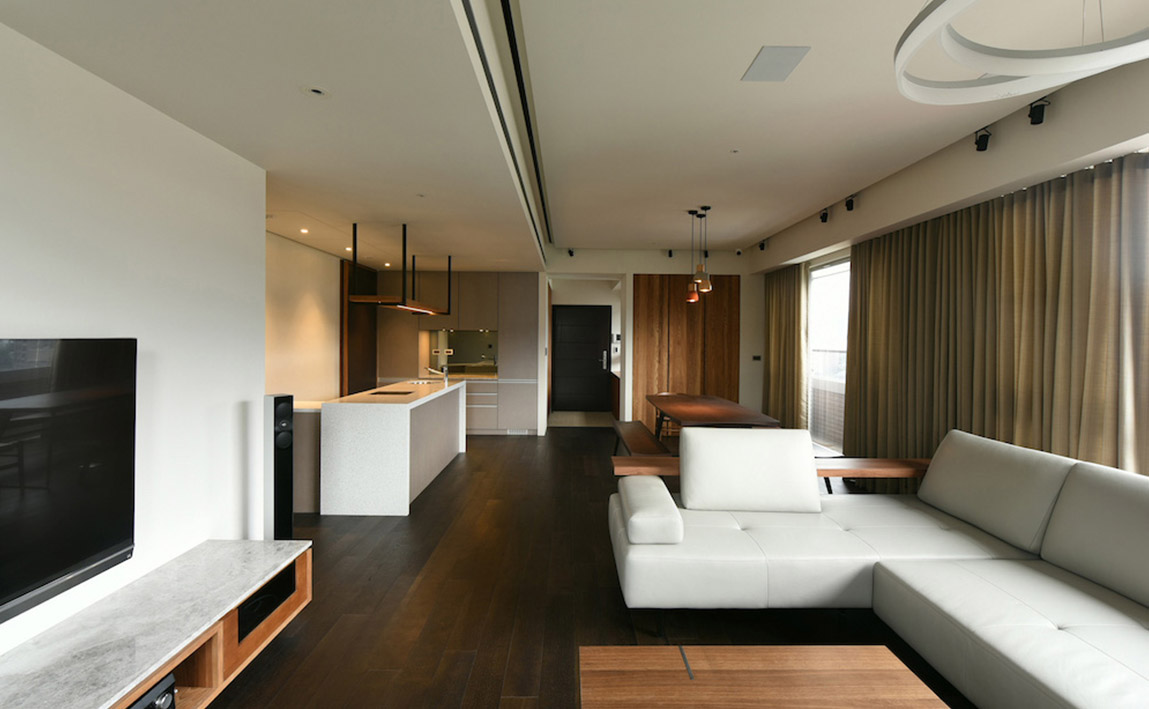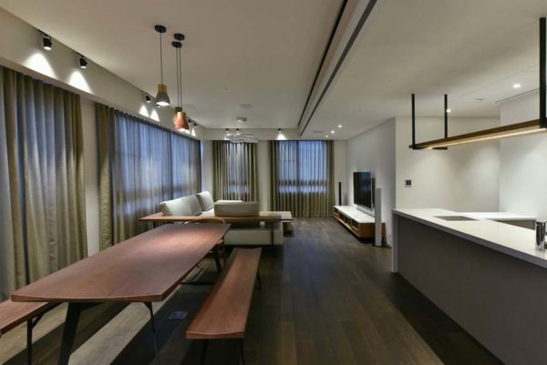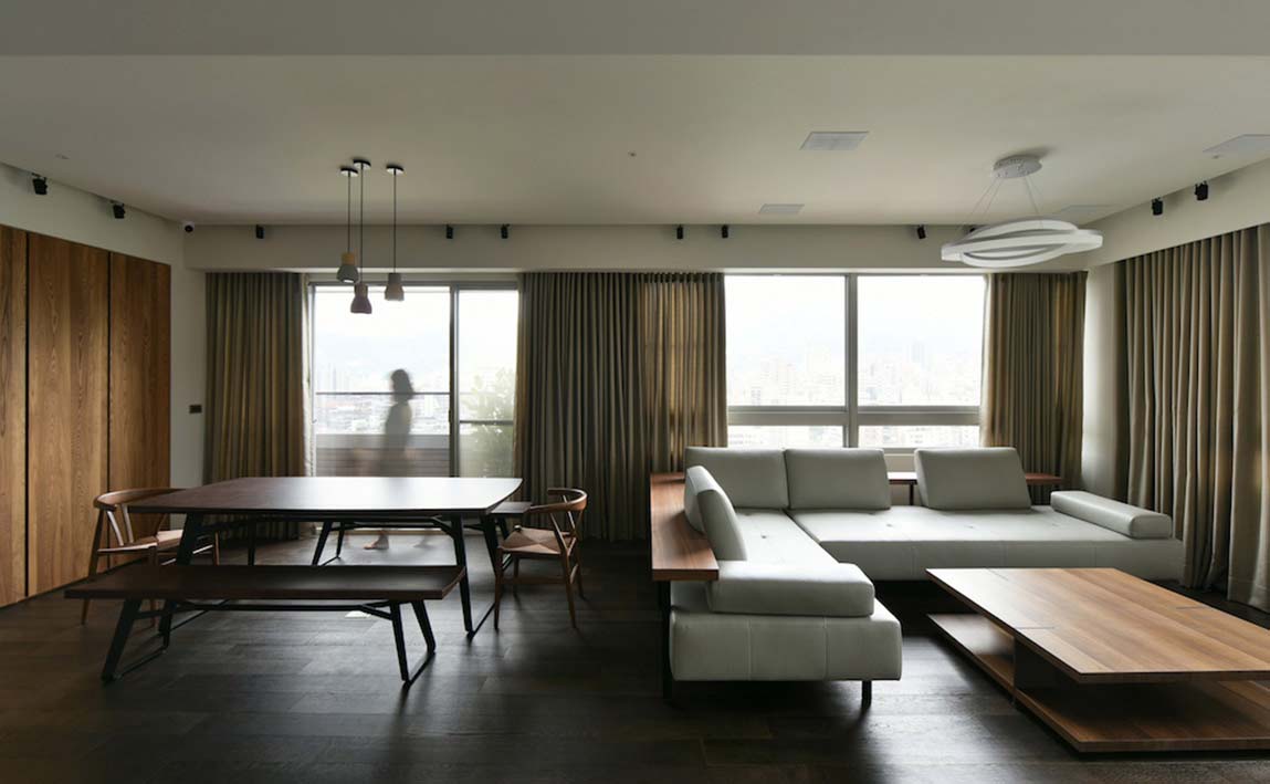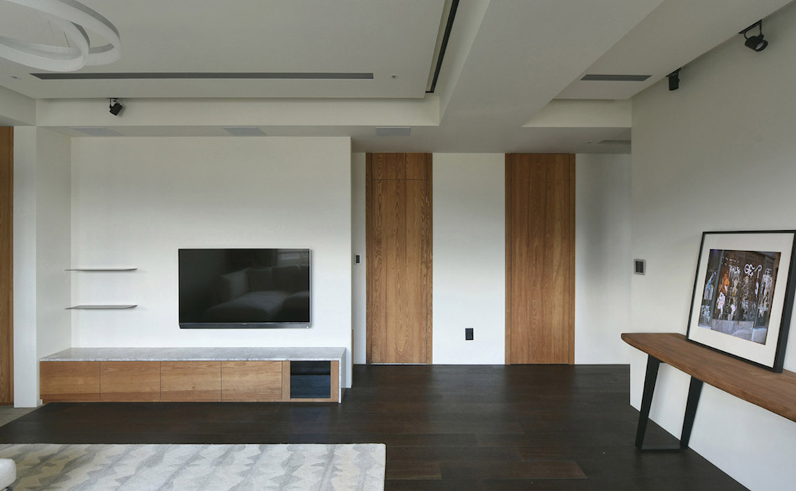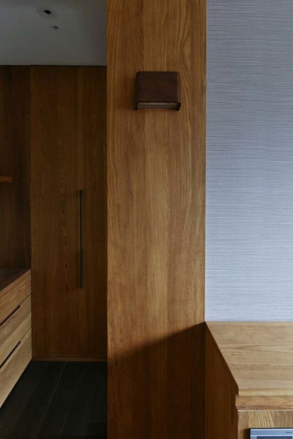 沉靜質樸的雙拼格局,滿足四代同堂的超年齡需求,設計總監Meg化繁為簡,其側為長輩專屬的活動區域,另一側給予晚輩的開放空間,彼此獨立又能互通,亦輕亦重。